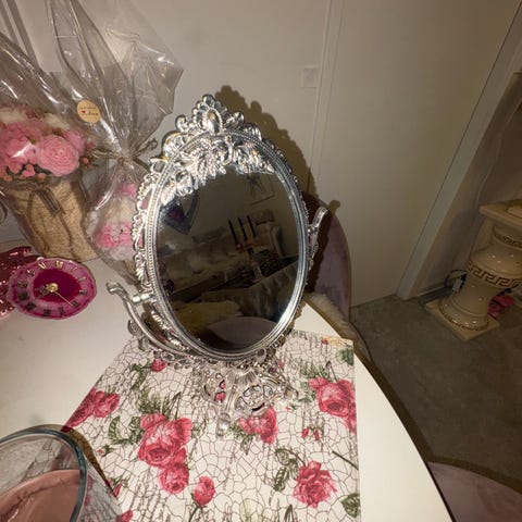2 stk spejle med udskåret ramme og malet blomsterdekoration