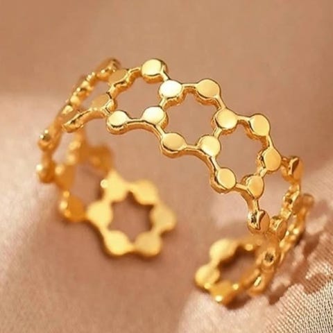 Ny og elegant ring i guldlook sælges. Den er feminin på den fede måde og kan justeres.