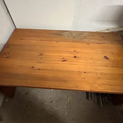 Sælger dette store Sofabord i fyrretræ og dette spisebords sæt med 4 stole til.