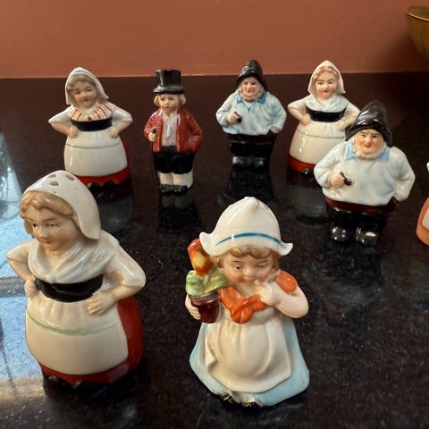 Vintage Sæt bestående af salt- og peberbøsser i messing med et ankermotiv i kobber på fronten Bøsserne har en blå indre beholder til krydderier. Designet er maritimt med en blank finish. Måler L 7.5 cm B 4 cm . Ved køb kan aftales levering i Ballerup eller i København.sæt koster 475 kr