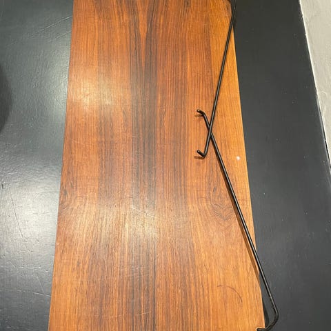 To hylder af teak fra Poul Cadovius, Royal System. I original indpakning, den ene kun åbnet af hensyn til foto. Hyldebærere eller ophængsbøjler medfølger desværre ikke.