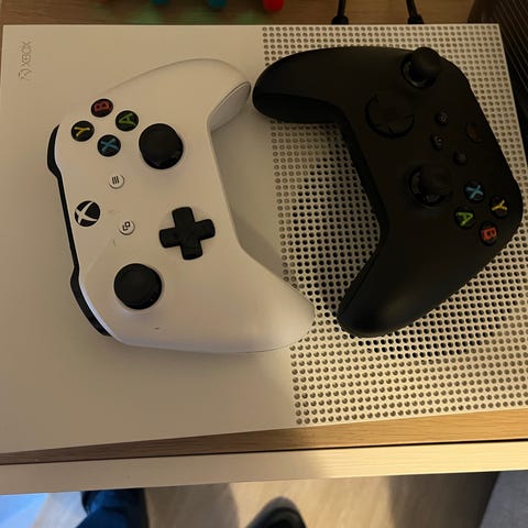 Det fede ved disse Xbox er at man kan koble dem sammen og have en i eks. sommerhuset og så kan man spille videre i sit spil på begge Xbox.