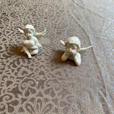 To engle i messing - kan bruges med eller uden lys. Vejer 400 g pr. stk. og måler 13,5 cm i højden. Sælges samlet