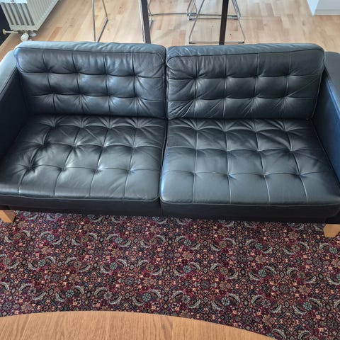 4-personers sofa inkl. puf, stået i et ikke-ryger hjem, krom-ben, ca. 4 år gammel, trænger til en rensning. Kan afhentes på Amager efter aftale.