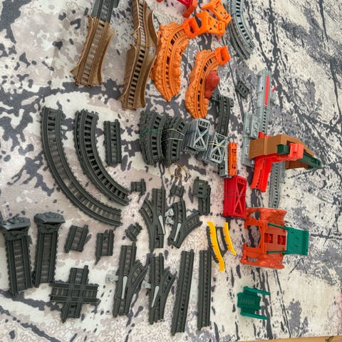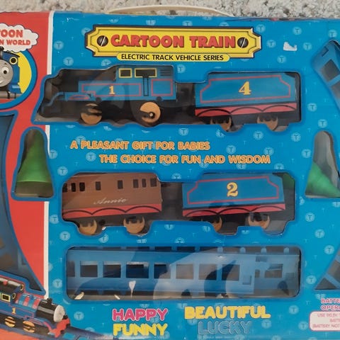 Thomas tog, tog baner og flere selvkørende toge sælges. Da min søn gik i gang med det i en for sen alder og der for kun gad det i et halv års tid. Det er den sjældne Fisher Price serie, se evt. Sidste billeder for skinde samling.