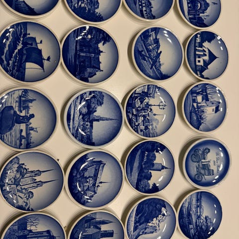 Royal Copenhagen Miniature Platter Sæt 5 Blå og Hvide Motiver
