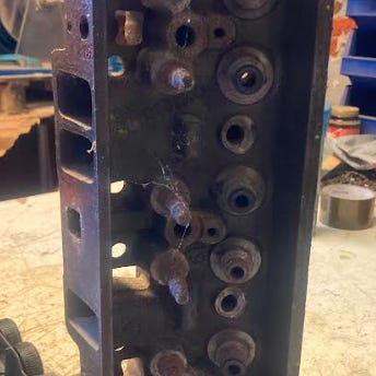 V8 Volvo 5,0 /5,7 mercruiser samme model. næsten komplet motor + dele med top blokke indsugnings karburator. Har stået ude under garagen i 3 år, så rust følger med gratis. Byd