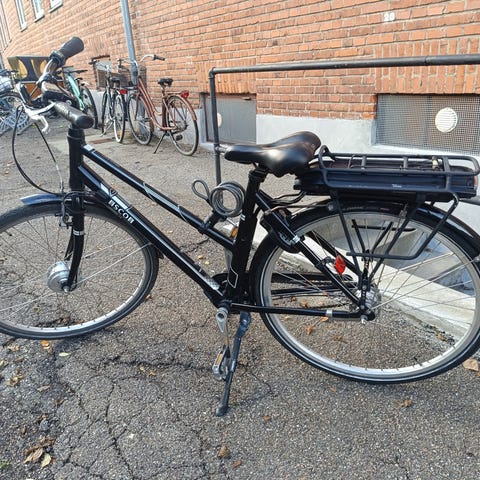 Rigtig pæn kvalitets alu elcykel med 7 indvendige Shimano gear i dansk design. 28 tommer hjul. Cyklen er virkelig flot og fremstår nærmest som ny. Cyklen har 2 nye punkterfrie dæk, ny rustbeskyttet kæde, ny sadel, ny ringeklokke, ny fastmonteret Basta ringlås med 2 nøgler, ny slange, nye kabler og ny refleks Derudover er der god Shimano håndbremse, alu styr, alu fælge, alu pedaler, alu støtteben m.m. Håndbremse på forhjul og fodbremse på baghjul. Sadlen kan justeres. Dækkene har en hård kerne, der gør at man næsten aldrig punkterer. Passer en person med højde på ca. 175 til 195 cm. Cyklen virker perfekt. Gearene virker selvfølgelig også, som de skal. Den er fra 2023 og har kun kørt 827 km. Rigtig godt batteri med 2 nøgler, lader, Låsebevis og kvittering medfølger. Fast pris. Mobilepay haves. Tlfnr. 41433260.