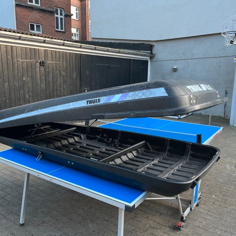 Kæmpe stor tagboks. Der er et par revner i boksen og er lappet med gaffatape. Kan kun åbnes fra den ene side. Den er helt tæt og funktionel. Sælges derfor billigt. Køb den til din ferie og sælg igen efter brug. Eller bare smid ud. Her har du i hvert fald en stor og rummelig tagboks til små penge. Thule Tagboks med en kapacitet på 630 liter. Farve: sølv. Materiale: robust plast. Designet til montering på biltag for ekstra opbevaringsplads ved transport.