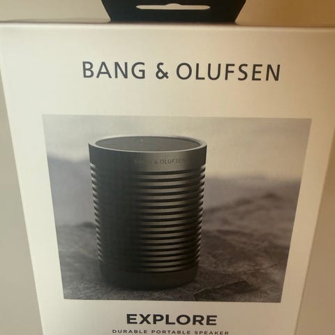Helt ny og uåbnet Bang & Olufsen Explore trådløs højttaler. Designet til udendørs brug med robust og vandafvisende materiale. Kompakt størrelse for nem transport og brug.