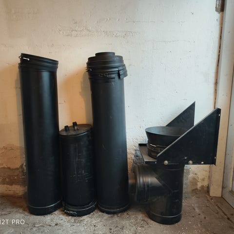 Danskdesignet smart skorstenssystem af KM, der desværre ikke produceres mere. Kan dog købes hos fx Roskilde pejsecenter, hvor prisen for en 0,5 meters isoleret stykke er ca. 1,800,-