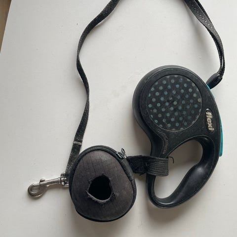 Flexi New Comfort line i lyseblå Fremstillet af plast og metal. Designet til hunde med fokus på komfort og brugervenlighed.