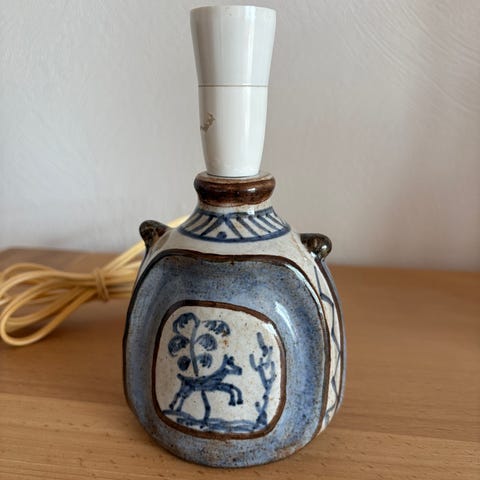 L. Hjort bordlampe i brune nuancer. Nr. 4. Højde 50 cm. Le Klint lampeskærm kan medfølge.