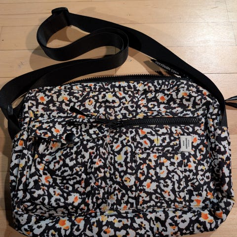 Måler ca 20 x 30 cm og har lang regulerbar rem
