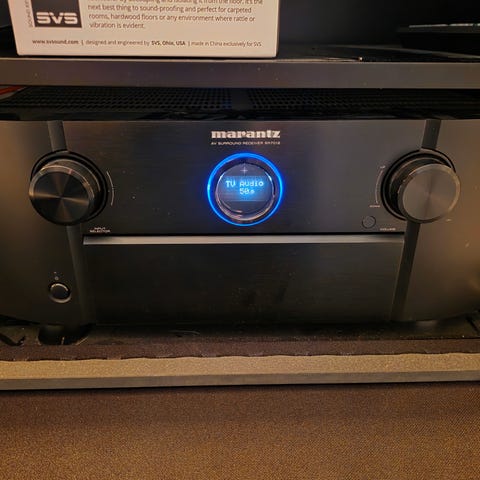 Marantz SR7013 AV Receiver med understøttelse af 4K UHD, Dolby Vision, IMAX Enhanced, og Dolby Atmos. Udstyret med HDMI-indgange, Bluetooth, Apple AirPlay, Spotify, og HEOS multiroom-funktion. Indeholder Audyssey MultEQ XT32 rumkorrektion og Dynamic Volume. Sort . Super velholdt, brugt i dedikeret hjemmebio og sælges kun pga. nedgradering/ pladsmangel. Nulstillet og klar til ny bruger, org. emballage incl tilbehør. Sendes ikke pga. vægt. Fedt fingre er pudset væk. :- ) kan leveres på strækningen Faxe Ladeplads / Søborg på hverdage.