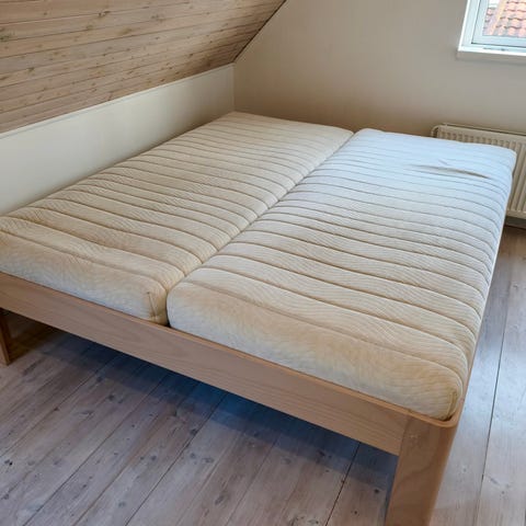 Sengen er skilt ad, alle skruer/møtrikker er i en plastikpose.