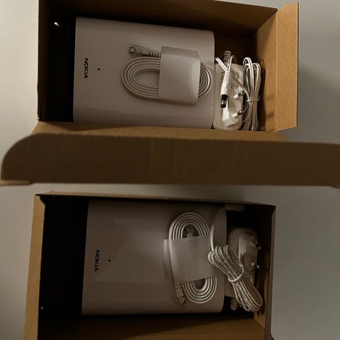 Nokia WiFi Beacon 1 Router designet til at forbedre trådløs netværksdækning i hjemmet. Enheden er hvid og kompakt, egnet til at eliminere døde zoner og sikre stabil internetforbindelse via WiFi.