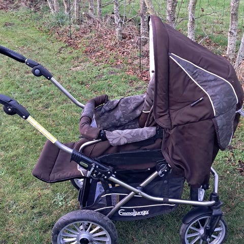 Klapvogn, hvor sædet kan vendes imod og væk fra føreren. Der medfølger et regnslag, vinterovertræk og alle hjul kan afmonteres. Stoffet er renset og stellet og hjul er rengjort.