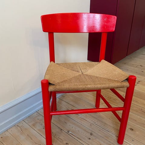 3 Folkestole designet af Børge Mogensen. Stolene har patina og det ene sæde skal repareres. Prisen afspejler dette.