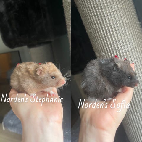 Nu er de sødeste små guldhamstere klar til at flytte hjemmefra. De er født d. 25/9 og er klar til at flytte i dag d. 26/10 hvor de er 5 uger gamle og klar til at forlade deres mor.