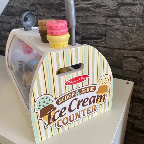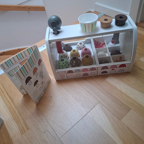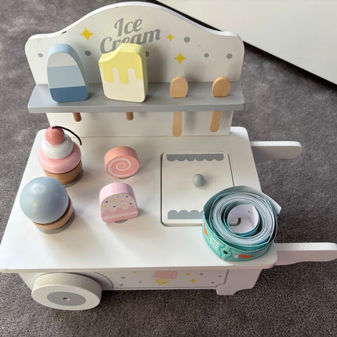 Ismaskine til legekøkkenet fra Le Toy Van. Den har to vafler og én kugle, der virker med magnet.