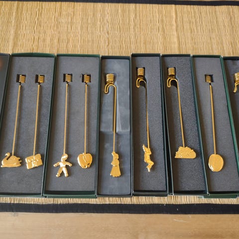 Christmas Collectibles Georg Jensen forgyldte / guld lysholdere - har kun været brug en gang og ellers ligget i skuffen. Æskerne har lidt mærker (små ridser og mindre tryk - se billederne ):
