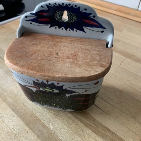 Smukt gammelt saltkar fra Aluminia. Kan sendes hvis køber betaler porto.