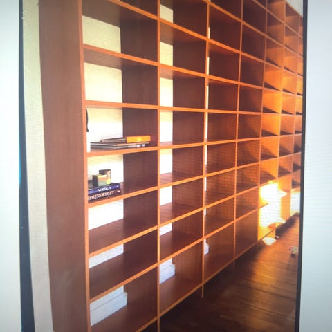 Smuk farve væg hylde i træ. 2 lange og 3 korte hylder. Kan justeres i forskellige højde. Price is negotiable.