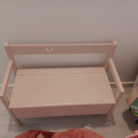 Børne/ køkkenbænk siddehøjde 45 cm. ligesom en almindelig stol. Har lidt patina. Kom med et bud.