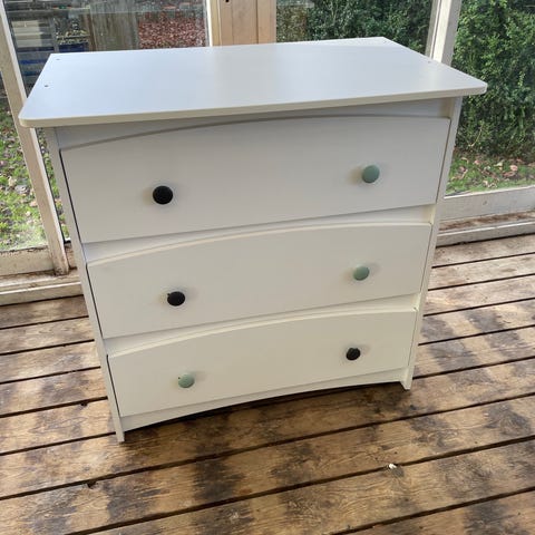 Flot og rummeligt Bekids Spoke puslebord med tre skuffer som kan laves til en kommode. Brugt til ét barn. Har en enkelt lille ridse på pladen (se billede), derfor den lave pris. Nypris: 3.699 kr.