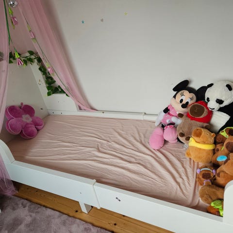 Busunge udstræksseng fra Ikea. Er sovet i to gange, grundet delebarn. Fejler absolut intet. Der medfølger to lager, samt vådligger. Der medfølger også to ekstra tillægsmadresser, så sengen vokser med alderen. Fulde længde på den er 80*200 cm. Mindste længde er 80*130 og mellemst længde er 80*165.