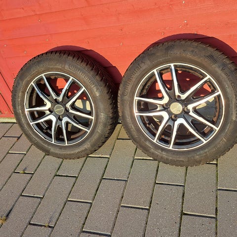 4 Proline alufælge med vinterdæk. 2 Continental dæk og 2 Evergreen dæk.