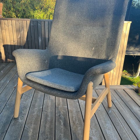 Pæn Ikea vedbo lænestol - blå og med høj ryg