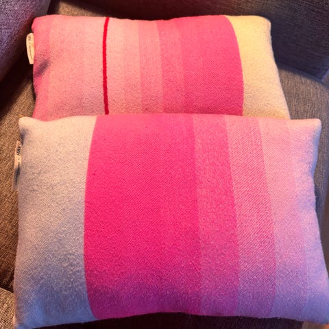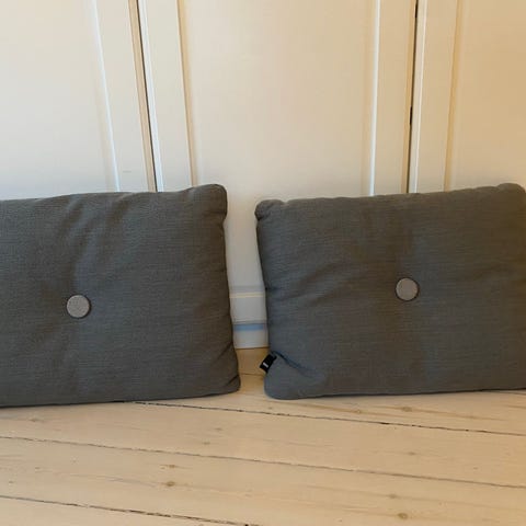 To Hay Puder i lysegrå med en gul og en mørkeblå knap sælges billigt pga flytning. To for 150. Én for 100. Skal afhentes på Frederiksberg.