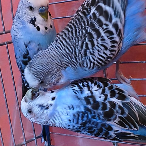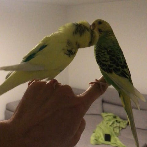 En grøn han på 2 år - er begyndt at lande på arm, men stadig nervøs