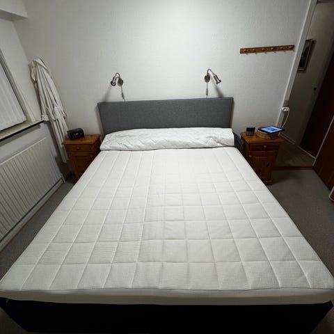 Vi sælger en næsten ny kontinentalseng i str. 180x200 cm.