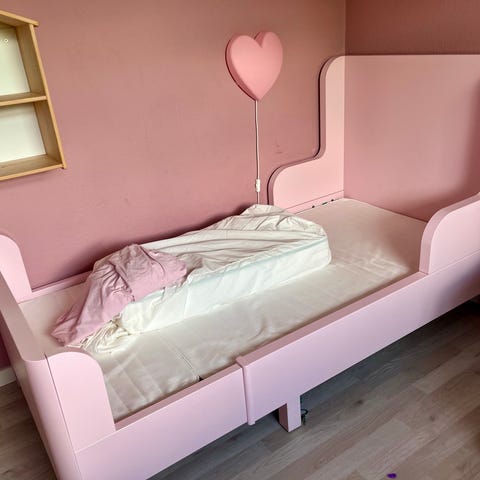Både seng og skummadras er næsten ubrugt, og der er ikke tisset eller lignende i dem. Kommer fra røgfrit og dyrefrit hjem.