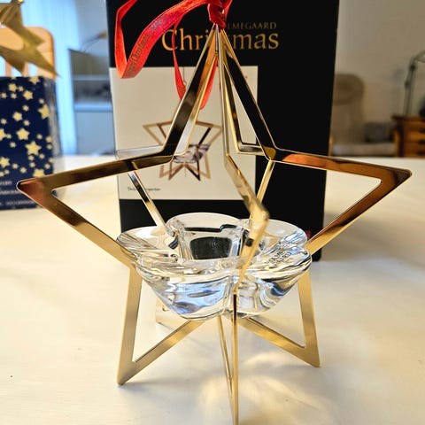 Holmegaard stjerne års lysestage 2007 i glas og metal. Designet til at holde et fyrfadslys.
