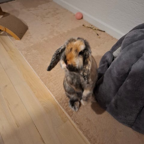 en hunkanin fra 5. oktober. det er en minilop i den fineste lysebrun pels. rolig, og vant til børn. Vi har desværre ikke nok tid til at lege og passe den, som den fortjener og ønsker derfor at den får et nyt, trygt hjem.