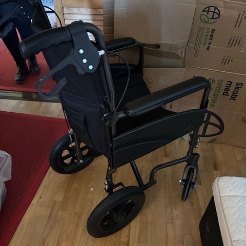 Ved at hive i to håndtag på hver side af sædet klappes kørestolen hurtigt sammen. Derudover kan ryglænet klappes halvt ned og fodstøtterne afmonteres, så kørestolen fylder ganske lidt. Håndtagene kan herefter bruges til at løfte og bære den sammenklappede kørestol.