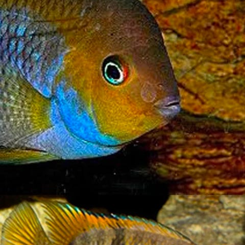 Rød frontosa. En linje avlet variant, der ikke findes i vildt og er en sjælden, men eftertragtet fisk.