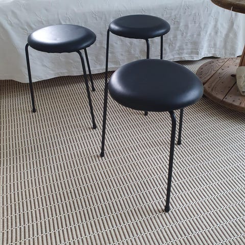 Trapez er en smuk og original pude designet af Arne Jacobsen. Mønstret på puden er et originalt designet mønster af Arne Jacobsen. Puden er lavet af strikket uld med polyesterfyld, og inderpuden er lavet af FlossFlakes. Fra dyrefrit og røgfrit hjem. 2 stk. til salg og prisen er pr. stk. Nypris pr. stk. kr. 1.049
