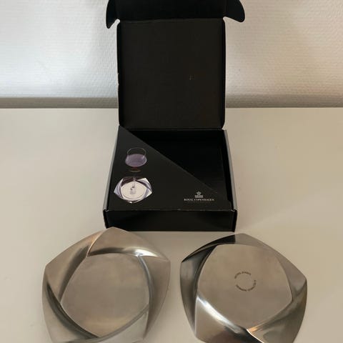 Georg Jensen sølv. Georg Jensen . glasbakker i let hammerslået sterlingsølv. Dekoreret med druer og vinløv samt profileret kant med perlekrans. Dessin 41. Diam. 8,3 cm. Ca 29gram