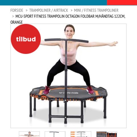 CardioTramp Mini Trampolin med sort hoppeflade og orange elastikker. Trampolinen har en rund form og fire foldbare ben, hvilket gør den nem at opbevare og transportere. Egnet til indendørs brug og træningsformål.