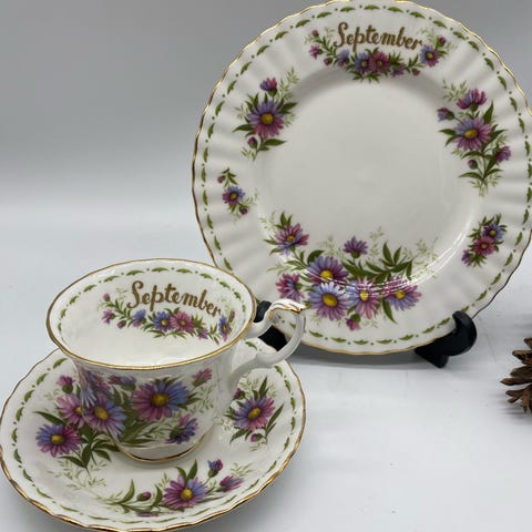 Royal Albert månedes kop + underkop + sidetallerken. Marst .