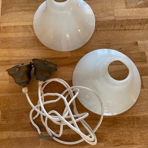 Ældre “opal” glasskærme med ny fatning og stofledning