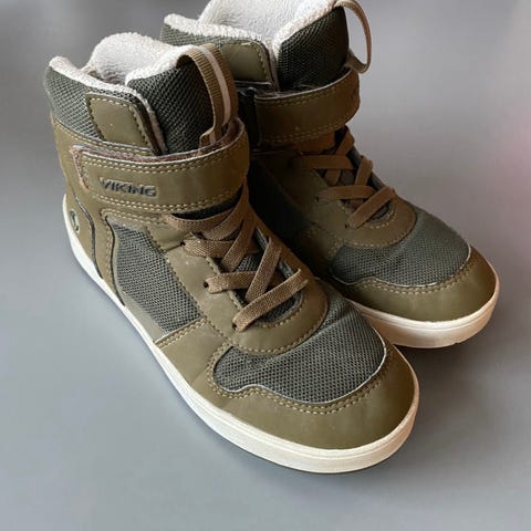 Viking børnesko til drenge i størrelse 41. Skoene er sorte og har en GORE-TEX membran, som gør dem vandtætte og åndbare. Skoene har velcrolukning og elastiske snørebånd for nem tilpasning og god pasform. Sålens mønster giver godt greb og stabilitet.