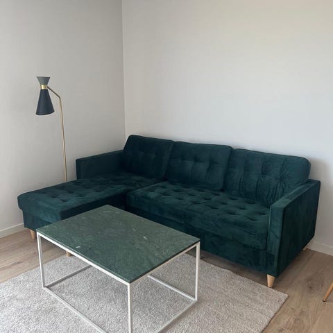 fint grøn sofa/side marmorbord i 45x45 og 50 højde uden synlige brugsspor