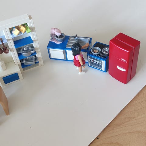 Playmobil køkken med møbler og madvarer