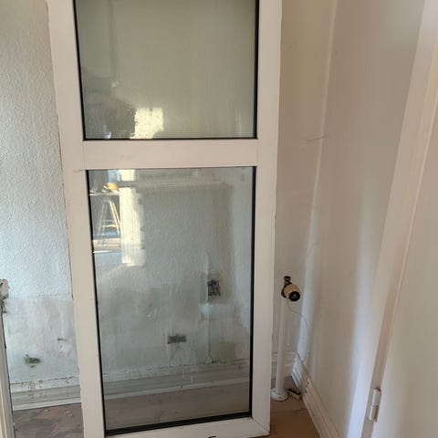 Vindue PVC bxh 209,0x159,0 cm. Kan åbnes midtfor for oven